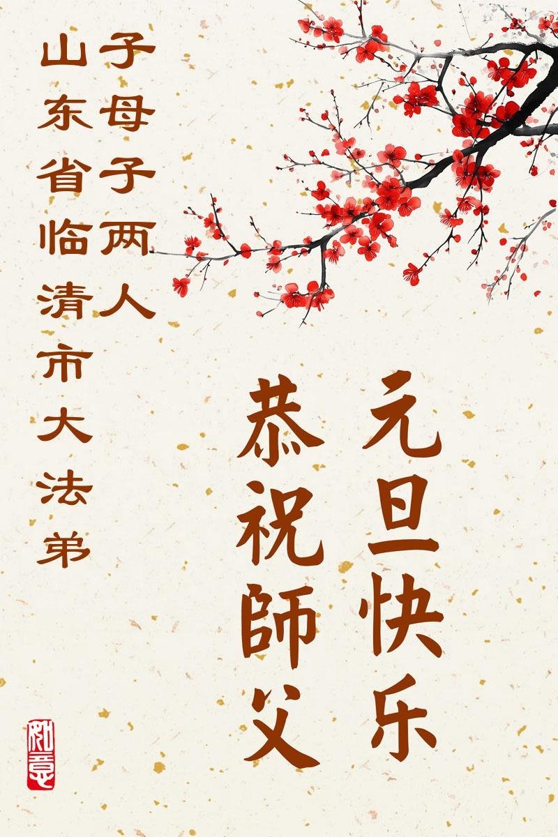山東省聊城市臨清市大法弟子母子兩人恭祝師尊元旦快樂!
