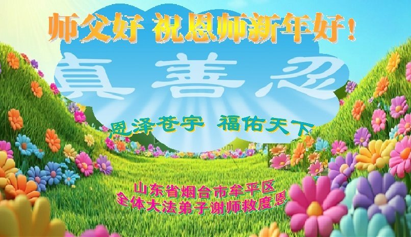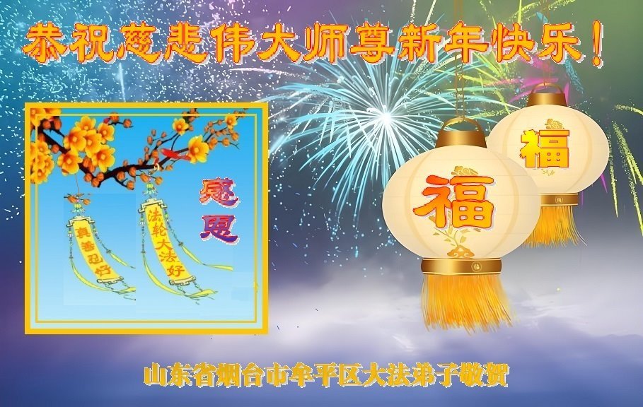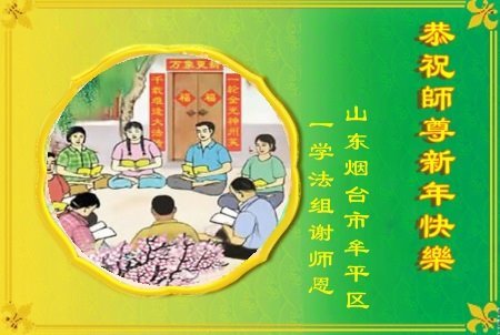 山東省煙台市牟平區一學法組弟子恭祝師父新年快樂!