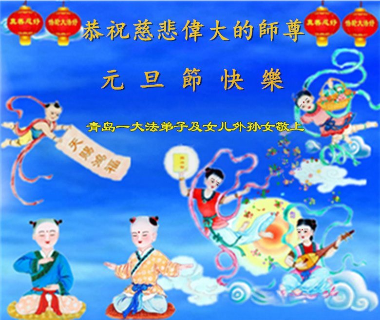 山東省青島大法弟子恭祝慈悲偉大的師父元旦快樂!