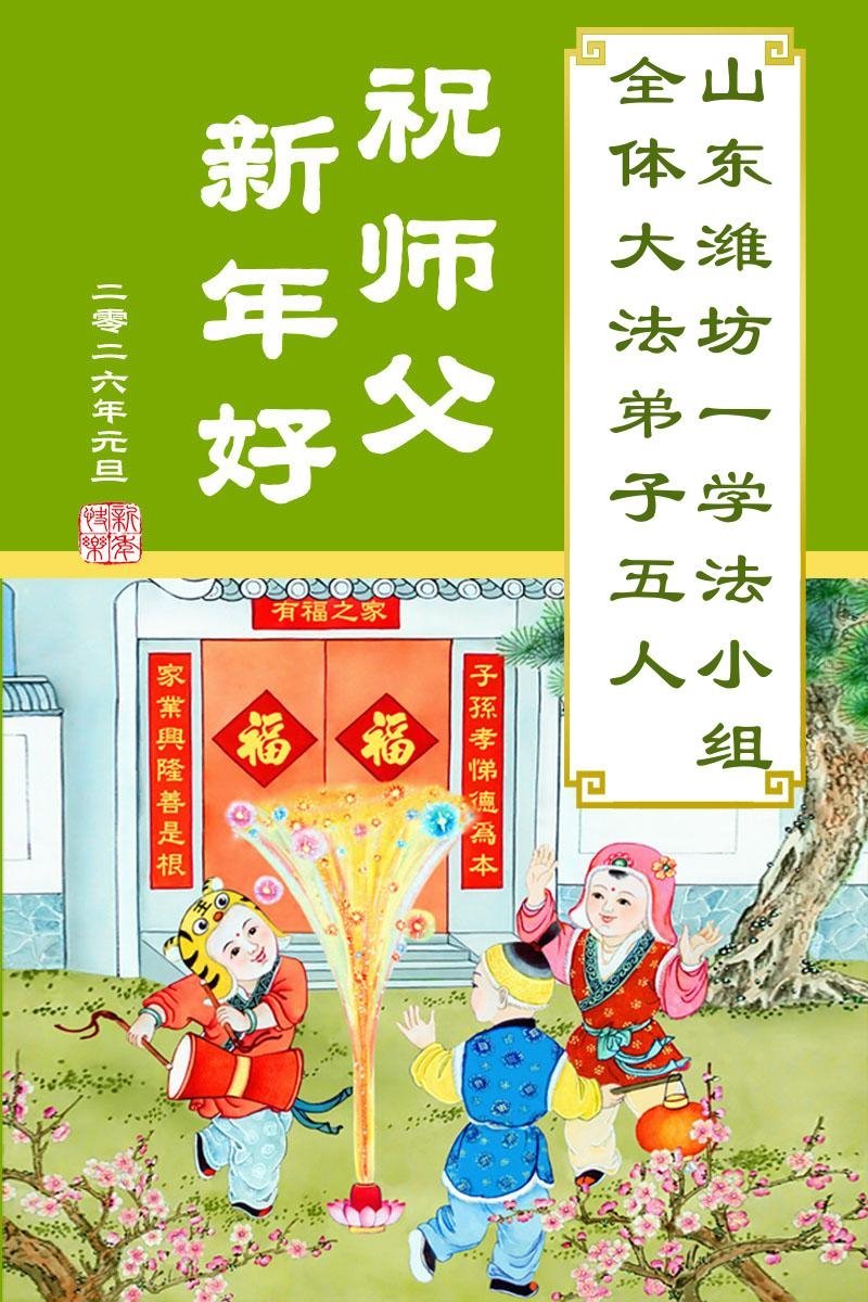 山東省濰坊一學法小組全體五位大法弟子恭祝師父新年快樂!
