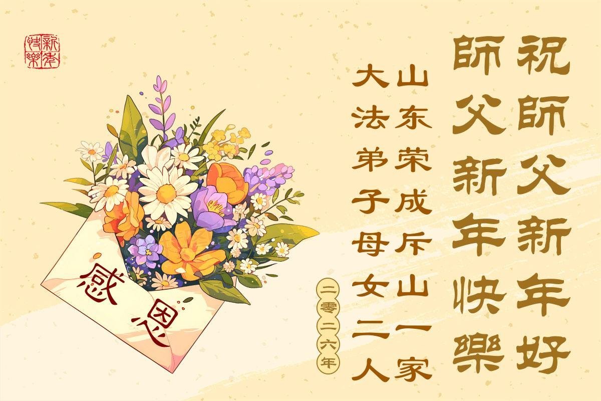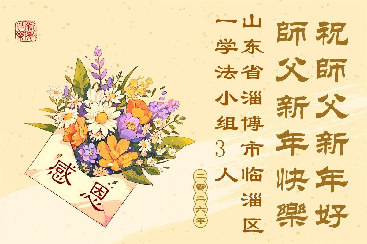 煙台市芝罘區一學法小組五位大法弟子給師父恭祝師父元旦快樂!恭祝師尊二零二六年新年快樂!