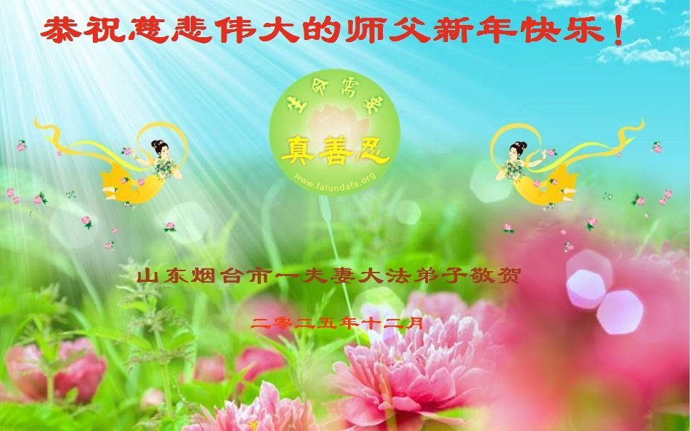 山東濰坊一對夫妻大法弟子恭祝慈悲偉大的師尊新年快樂!