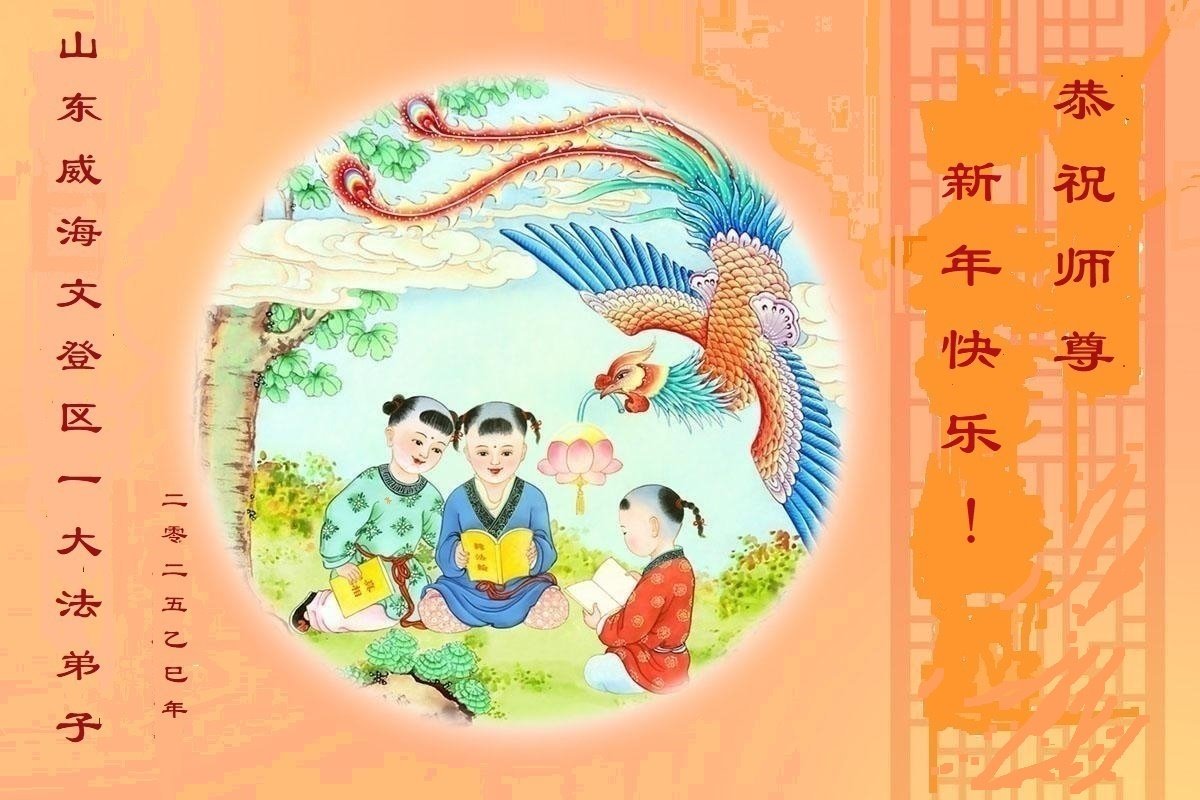 山東省威海市文登區一大法弟子及全家恭祝師父新年好!