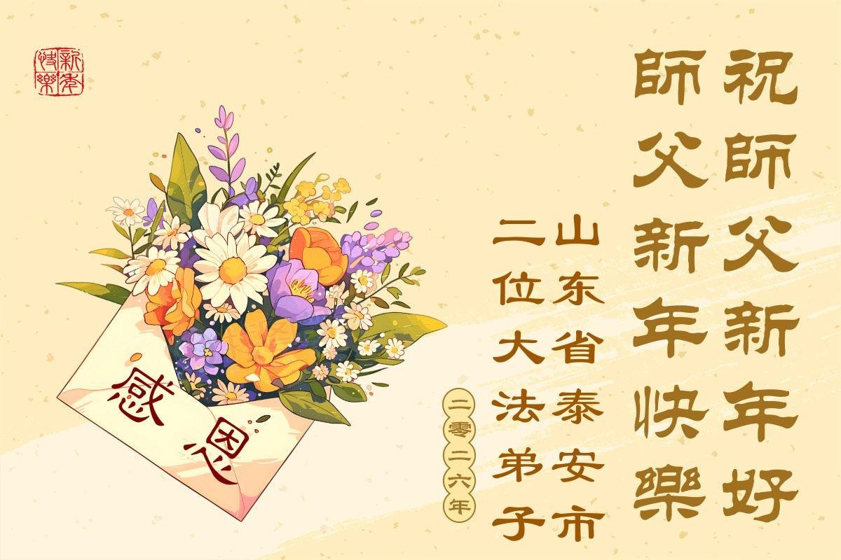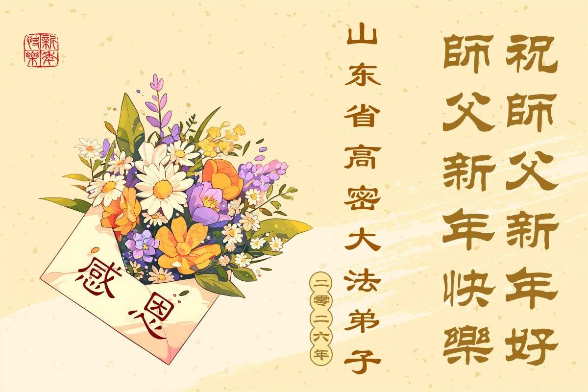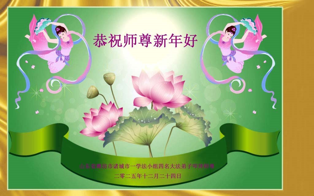 慈悲偉大的師尊您好,我們是山東濰坊一學法小組同修,祝師尊新年快樂!在新的一年我們都會努力做好三件事,讓師父少操心。
