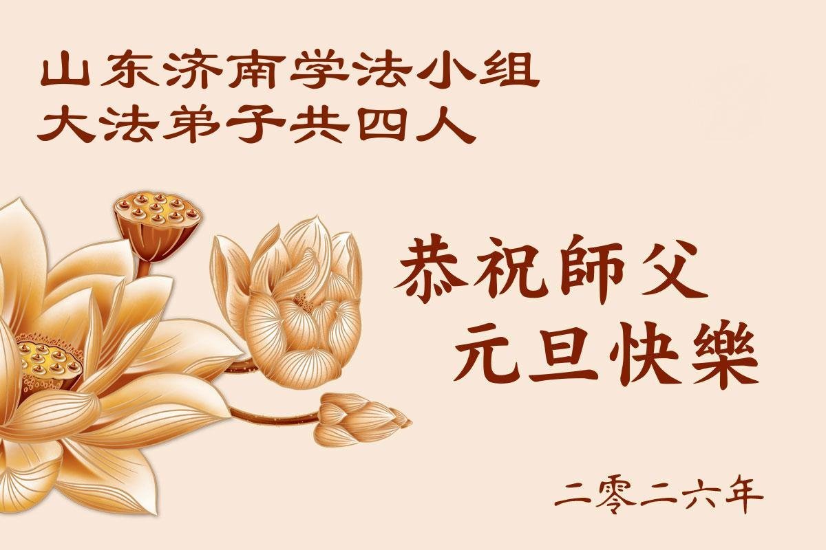 山東濟南全體大法弟子恭祝慈悲偉大的師父元旦快樂!