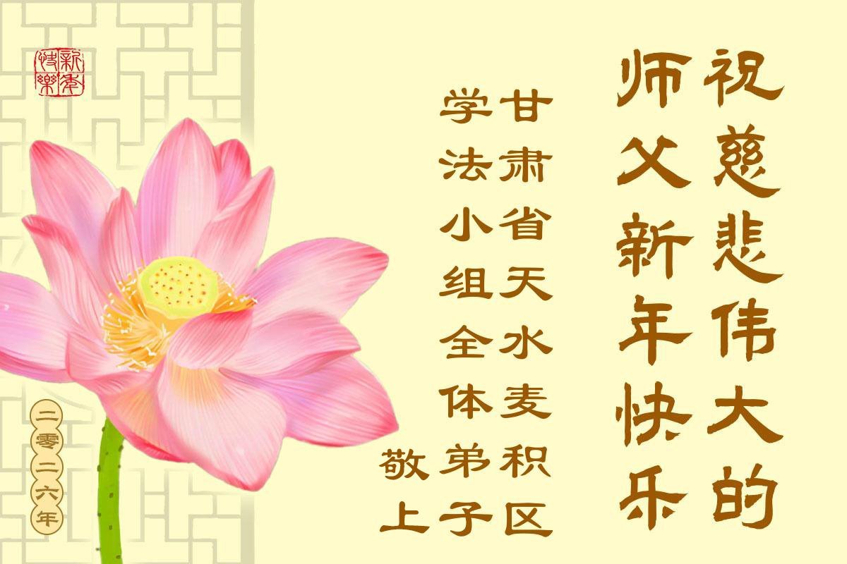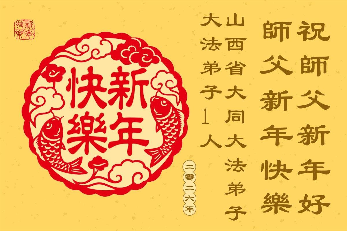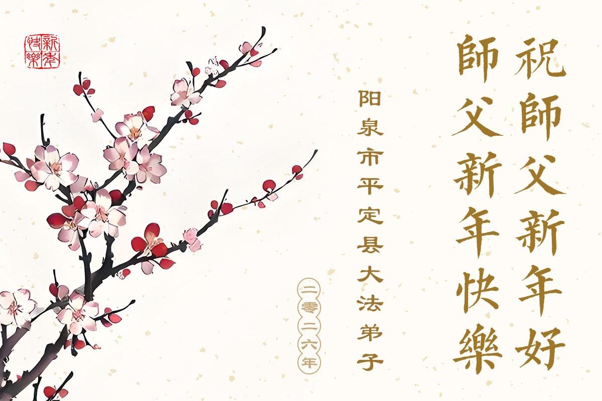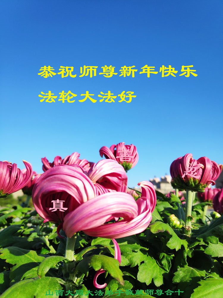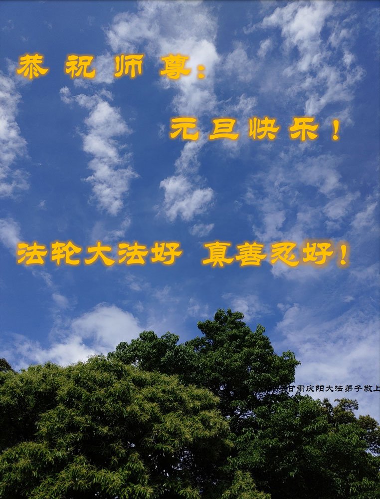 師尊正法又一年,值此新年之際,恭祝師尊元旦快樂!弟子謹記師尊教誨,做好三件事,助師正法、救度眾生。為了救度眾生,為了世人得救,師尊付出了自己的一切。為了全宇宙的眾生能夠得救,師尊不惜層層下走到三界之人間。為了世人有美好的未來,敬請迷中的世人快一點了解法輪大法,法輪大法是來救你的,師尊是為了全人類得救而來!