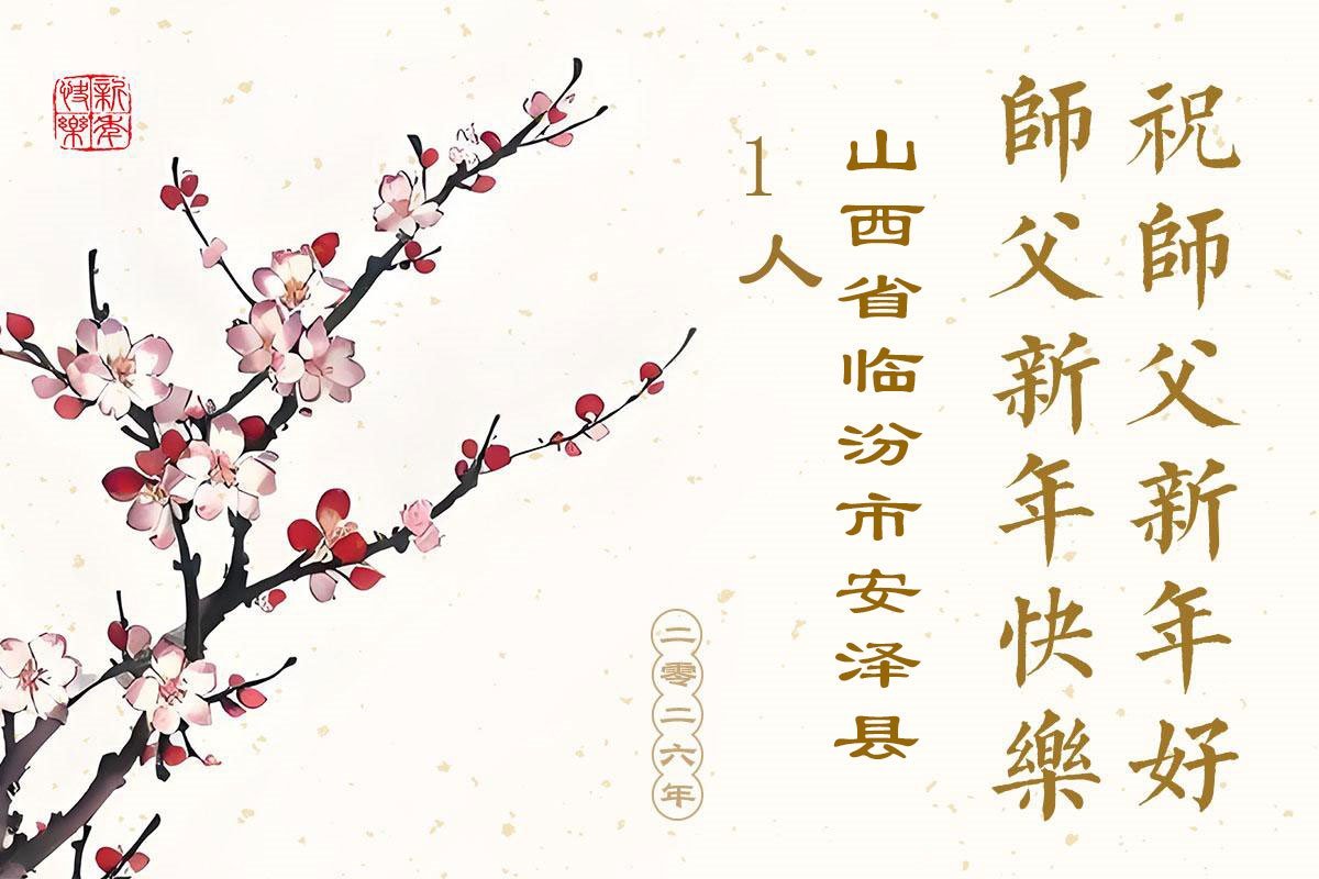 恭祝慈悲偉大的師尊新年好!師尊您辛苦了!感謝您的慈悲苦度弟子無言以表。弟子堅修大法的心堅如磐石,弟子要修好自己,引導家人走回傳統路,做好三件事。願師尊多一份欣慰,少一份操勞。