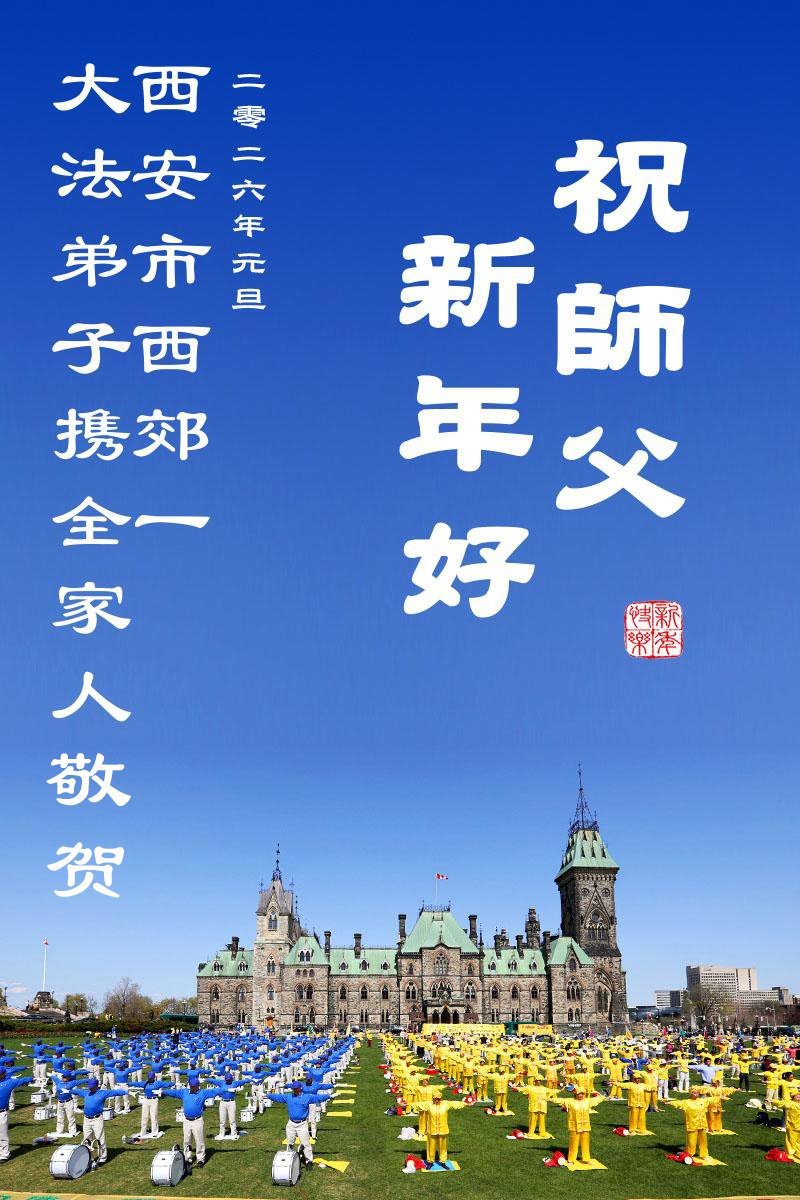 陝西省西安市大法弟子恭祝慈悲偉大的師尊2026年元旦快樂!