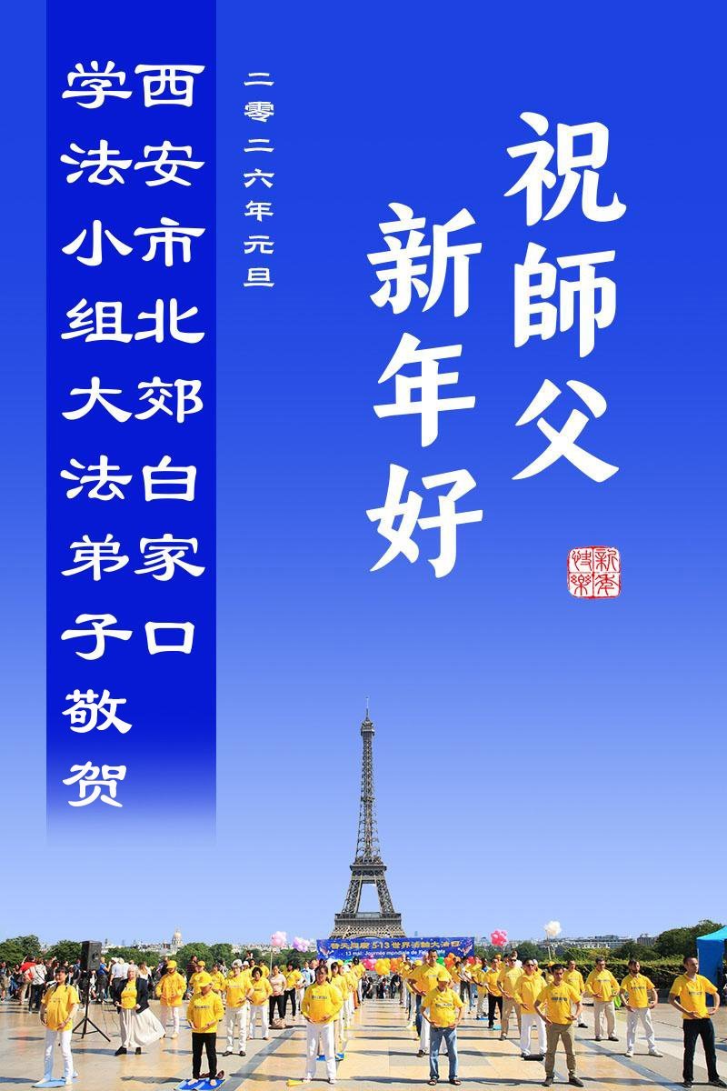 陝西省西安市西郊一學法小組法弟子恭祝偉大師尊元旦快樂!
