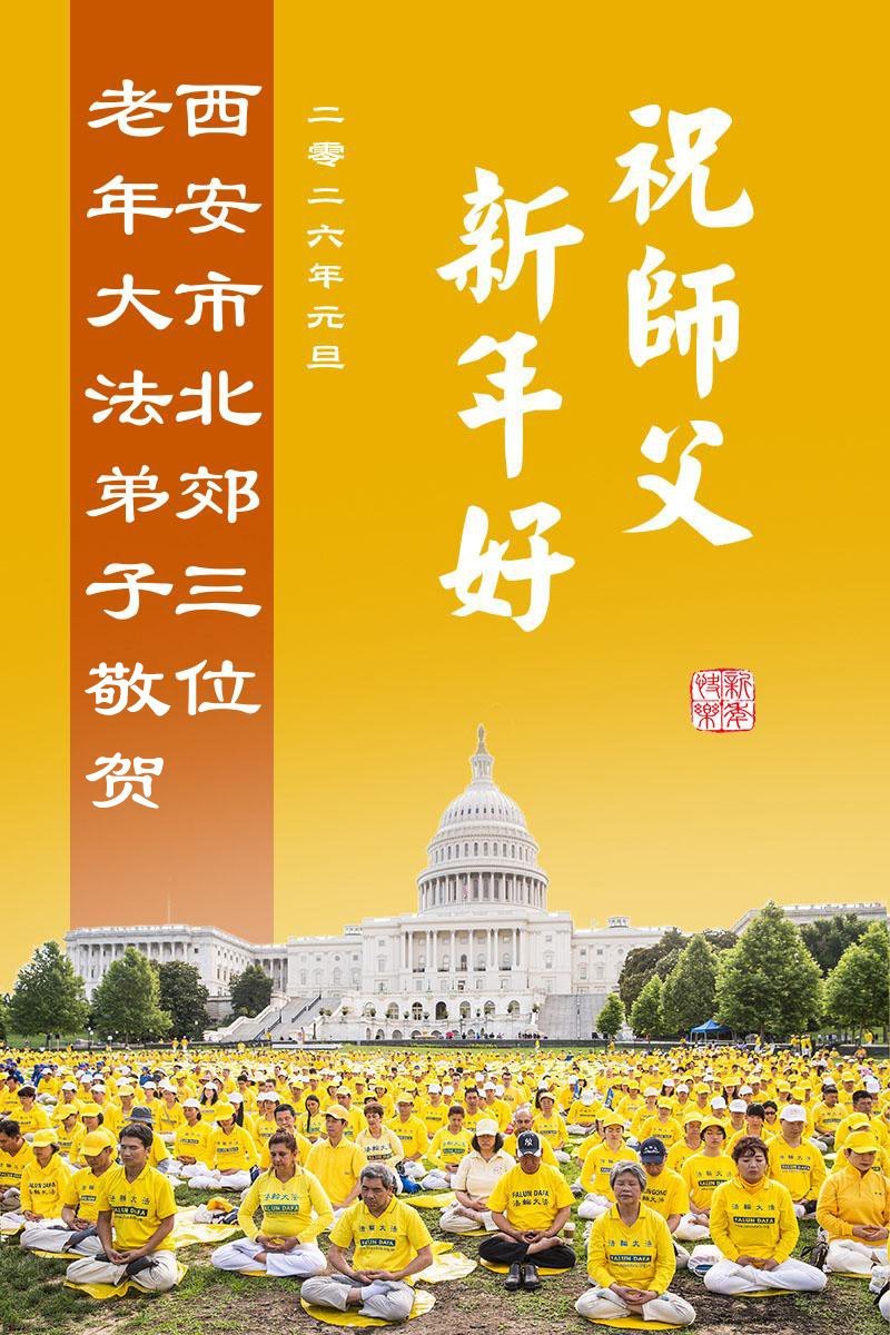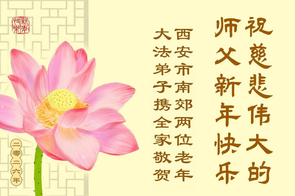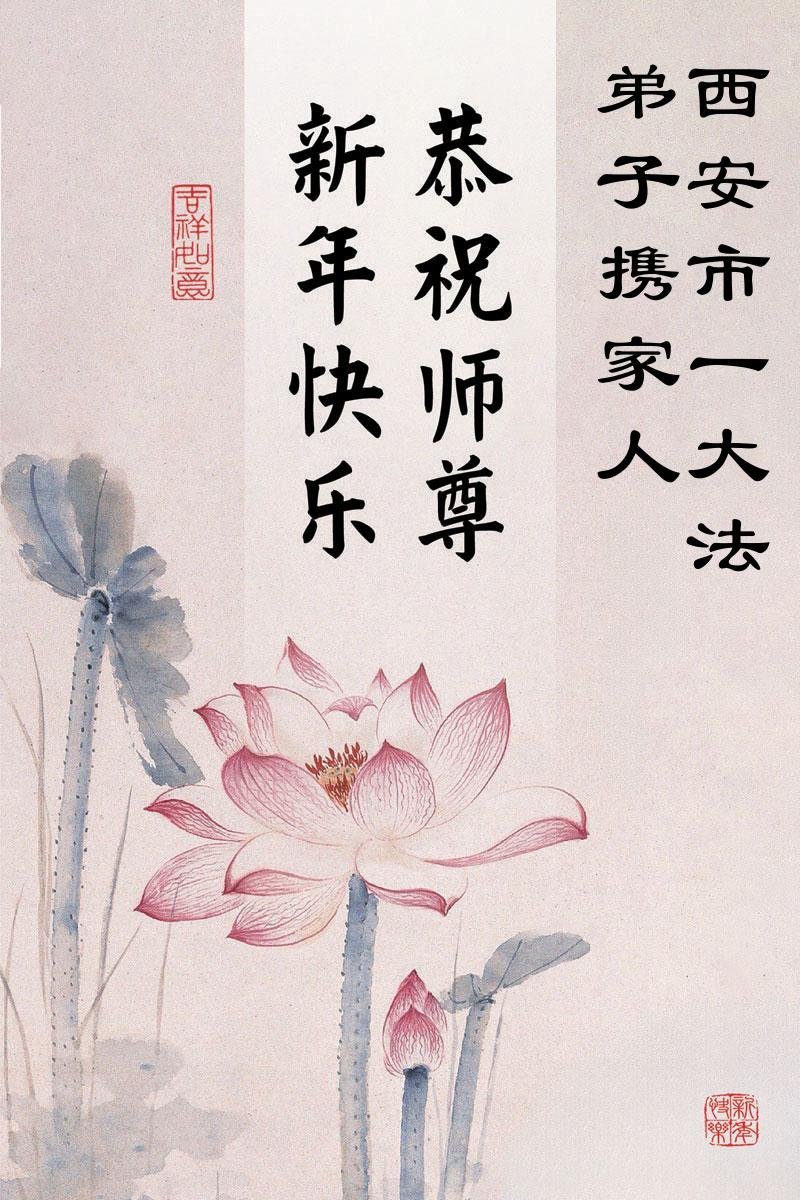 陝西省西安北郊一大法弟子及全家恭祝師尊元旦快樂!