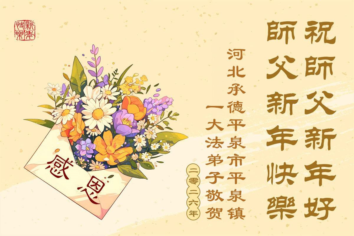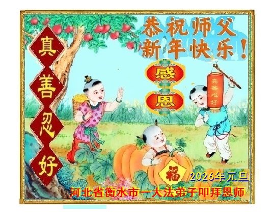值此新年來臨,恭祝慈悲偉大的師父新年快樂!歲月匆匆轉眼又一年,在師父的慈悲護佑下,弟子平穩的做好三件事,感恩師父,感恩大法。弟子唯有信師信法,精進不怠,不負師父慈悲救度之恩!修好自己,少留遺憾,圓滿隨師還!