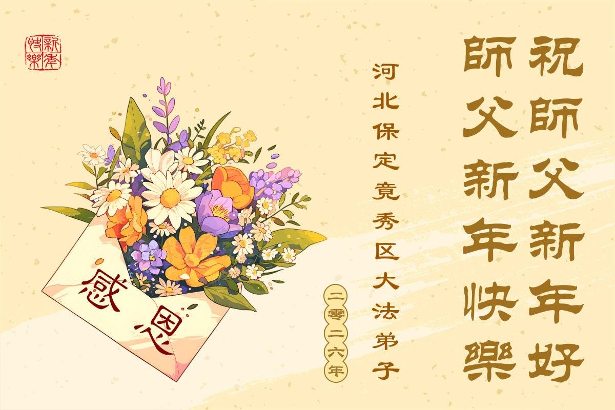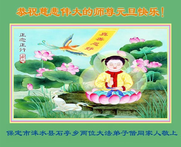 河北省保定市一學法小組二位大法弟子恭祝師尊元旦快樂!