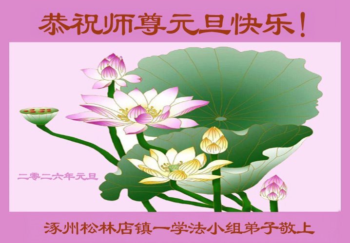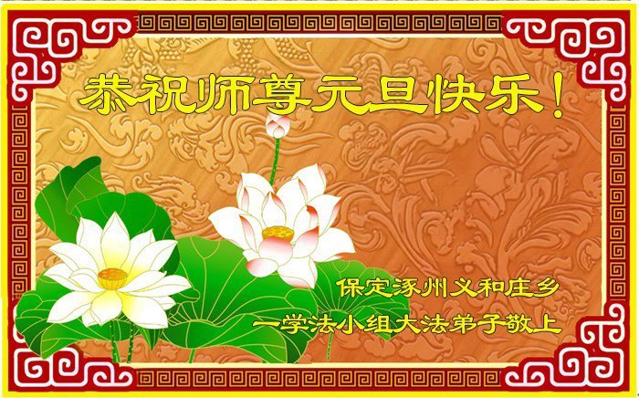 河北保定市涿州松林店鎮一學法小組大法弟子恭祝師尊元旦快樂!