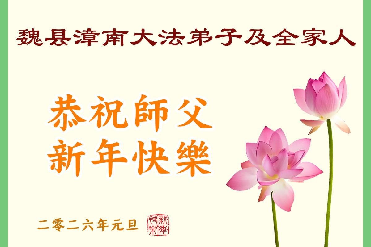 河北省滄州市東光縣一大法弟子及家人恭祝師尊元旦快樂!