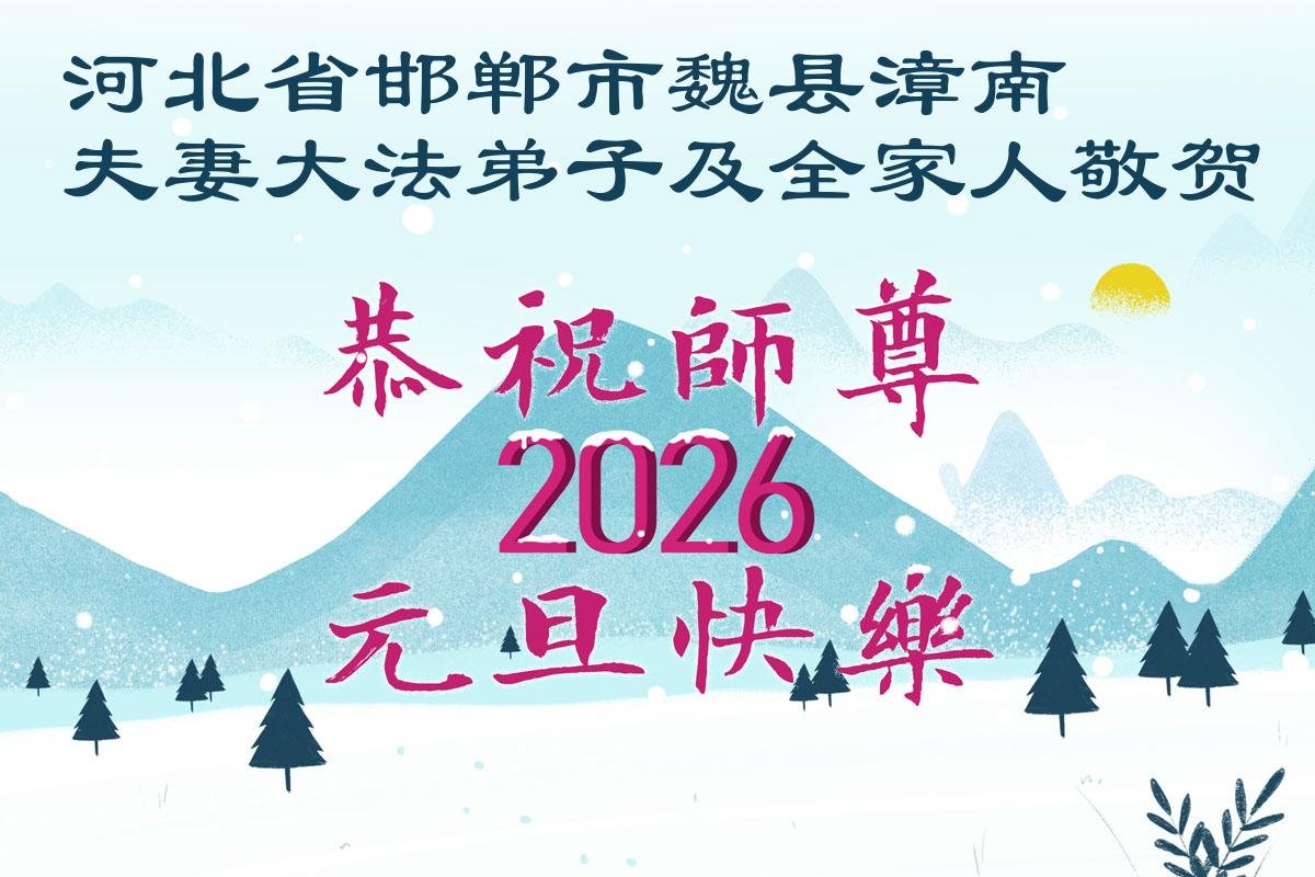 新年即將到來之際,恭祝慈悲偉大的師父元旦快樂!弟子無比感恩師尊多年的慈悲看護,讓我走到今天,弟子每一步凝聚著離不開師尊的操勞,在今後不長的時間裏,跟上正法進程,做好三件事,兌現誓約。圓滿隨師還。
