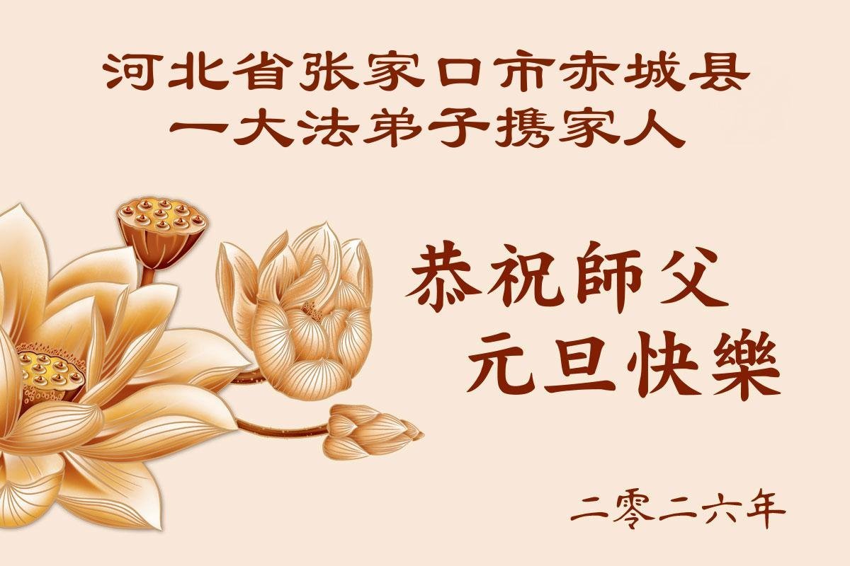 河北省張家口市赤城縣一大法弟子攜家人恭祝師尊元旦快樂!