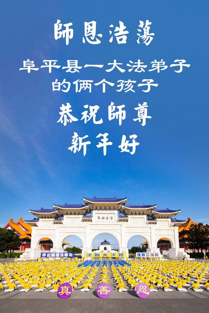 河北省保定市阜平縣一大法弟子的兩個孩子恭祝慈悲偉大的師尊新年快樂!
