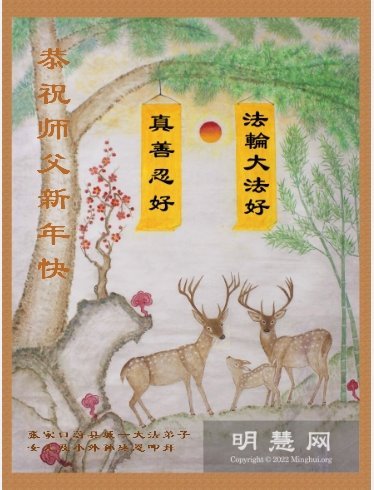今生能成為大法弟子是我人生最幸福的事!師父不但給我淨化了身體,還給了我一個和睦的家庭,並賜予我法寶:遇事向內找,把宇宙最高的榮譽給了我們正法時期的大法弟子!我用盡人類的語言也無法表達對師父的感恩!在這新年即將到來之際,弟子恭祝師父新年快樂!