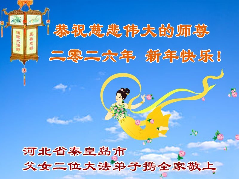 河北省秦皇島市父女兩位大法弟子攜全家恭祝師尊新年快樂!