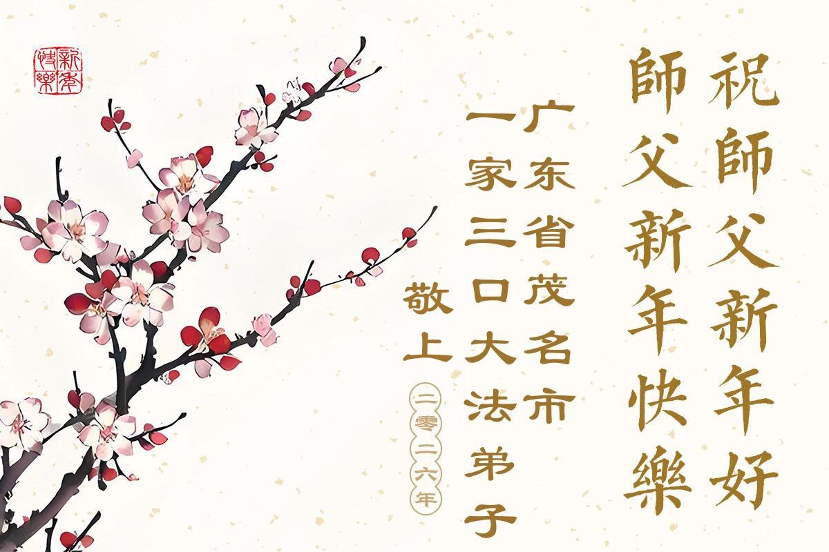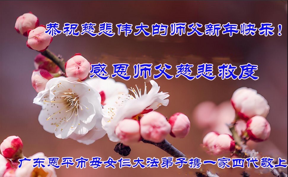 弟子攜女兒和倆位外孫恭祝師父新年好!師父辛苦了!在這正法最後時刻,弟子要修好自己,多救眾生,跟隨師父回家。感恩師父的慈悲救度!