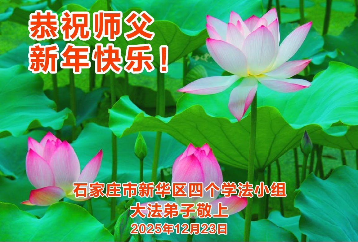 河北省石家莊市新華區一四個學法小組大法弟子恭祝師父新年快樂!