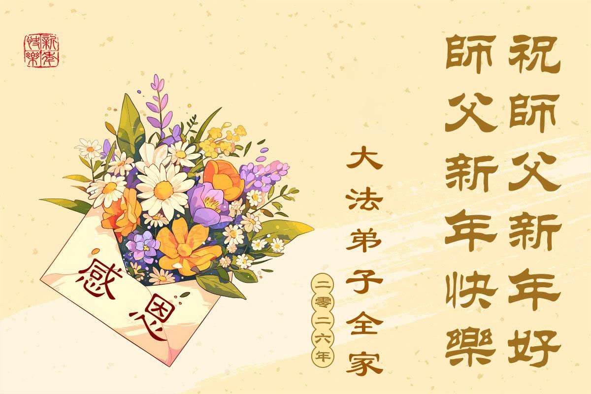 在二零二六年元旦來臨之際,弟子攜全家恭祝師父新年好!在新的一年裏,弟子一定會珍惜師父給延續的最後一點寶貴時間,精進不怠,多學法,去掉所有的人心、人念與執著,助師正法,多救人!