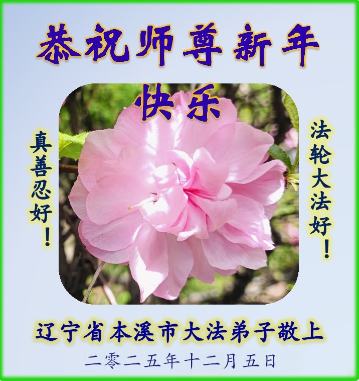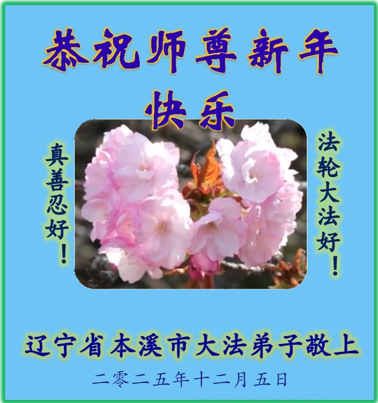 師父您好!恭祝師父新年快樂!感恩師尊慈悲救度。感謝師父給予弟子修煉大法的機緣。弟子一定把講真相、助師正法、救度眾生視為己任。