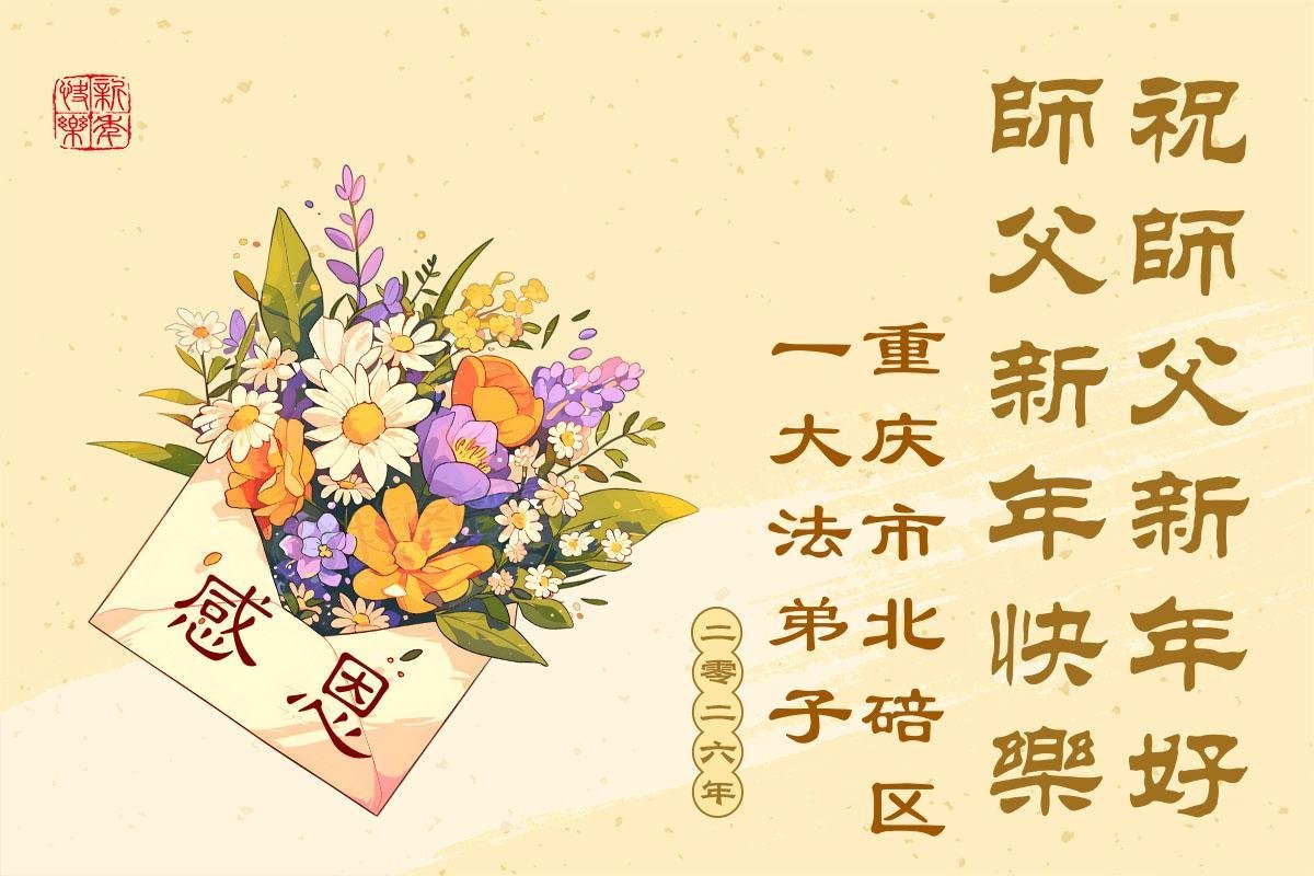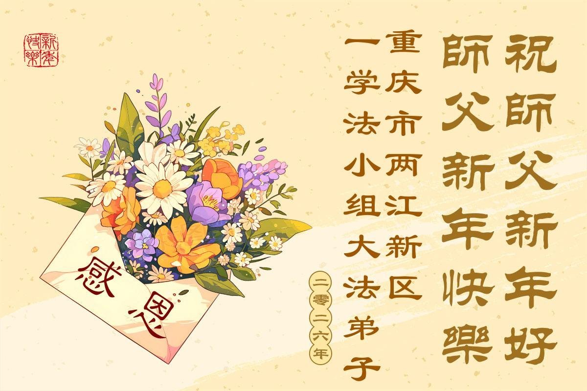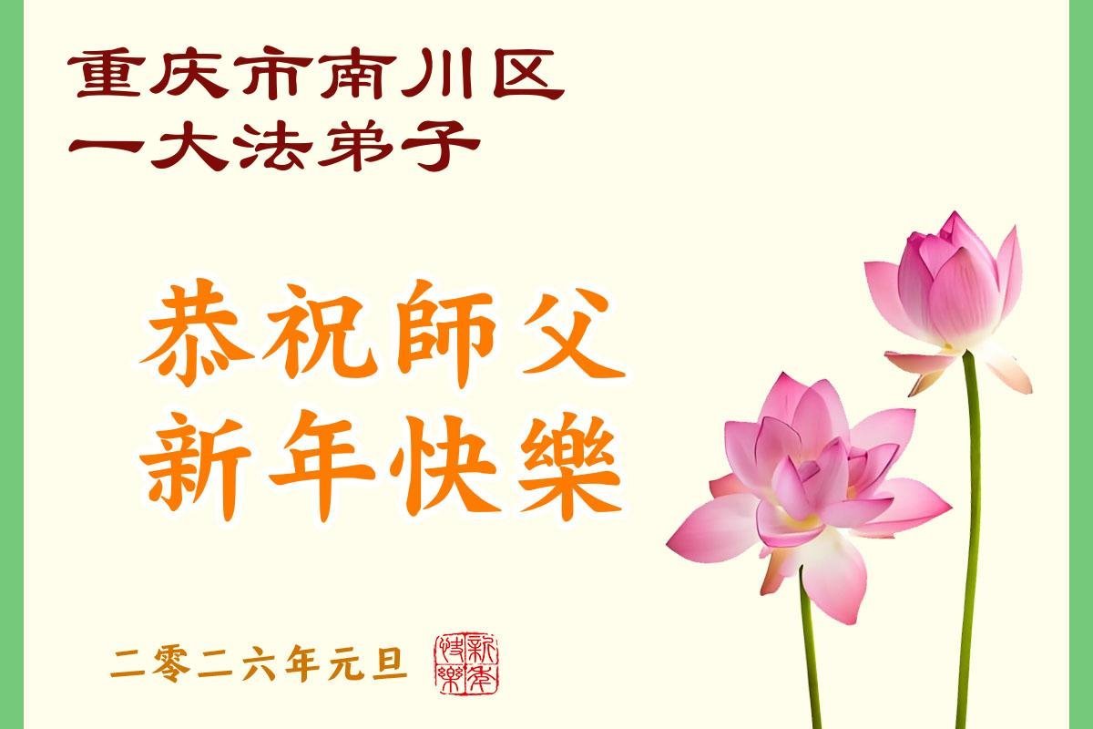 重慶市江北區一學法小組大法弟子恭祝師尊新年快樂!