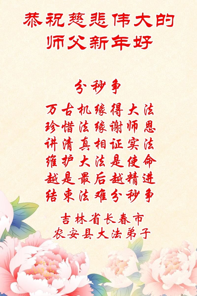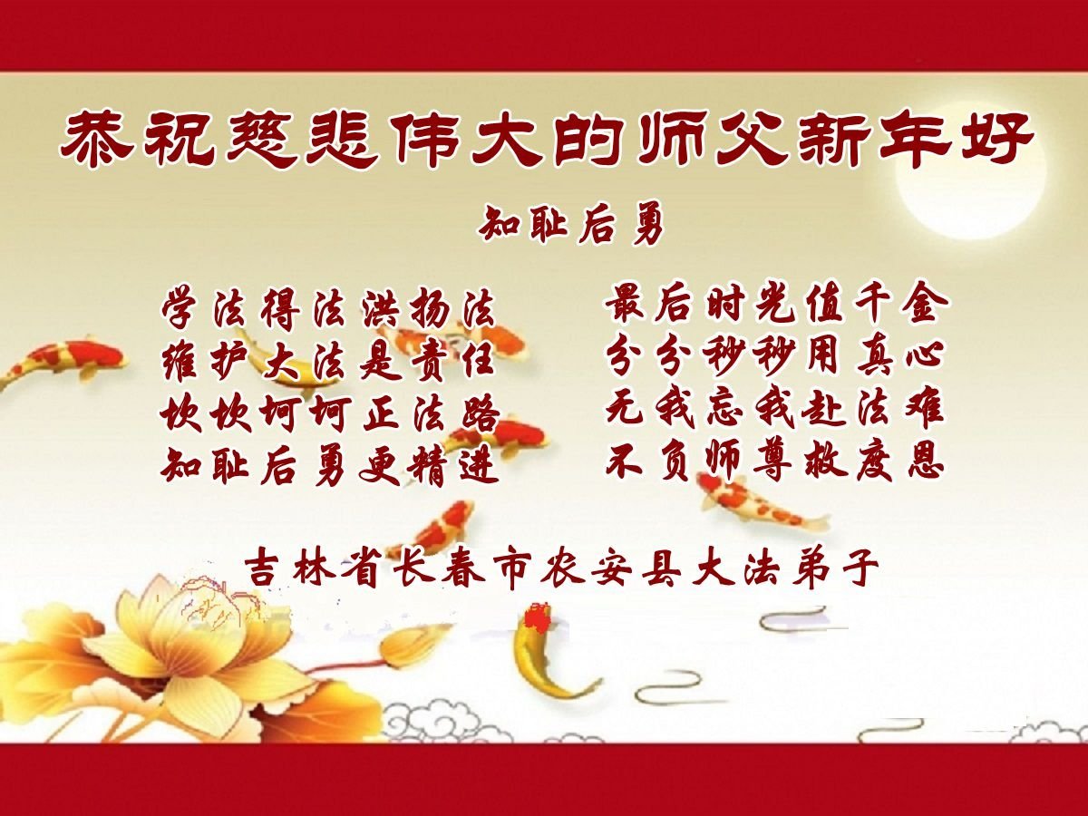 吉林省長春市農安縣大法弟子恭祝慈悲偉大的師父新年好!