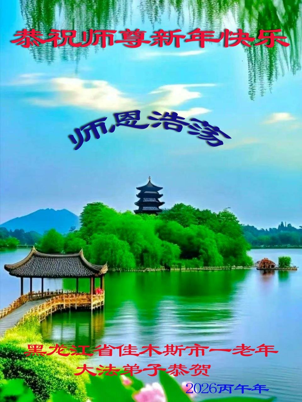 尊敬的師尊您好!師父為弟子的付出的太多太多,弟子為了感謝師尊,在2026新年即將到來之際,弟子懷著無比感恩的心情向師尊道一聲,師父新年好!師父新年快樂!在新的一年裏弟子一定要做好大法弟子該做的三件事,學好法,精進實修,不辜負師尊慈悲救度。