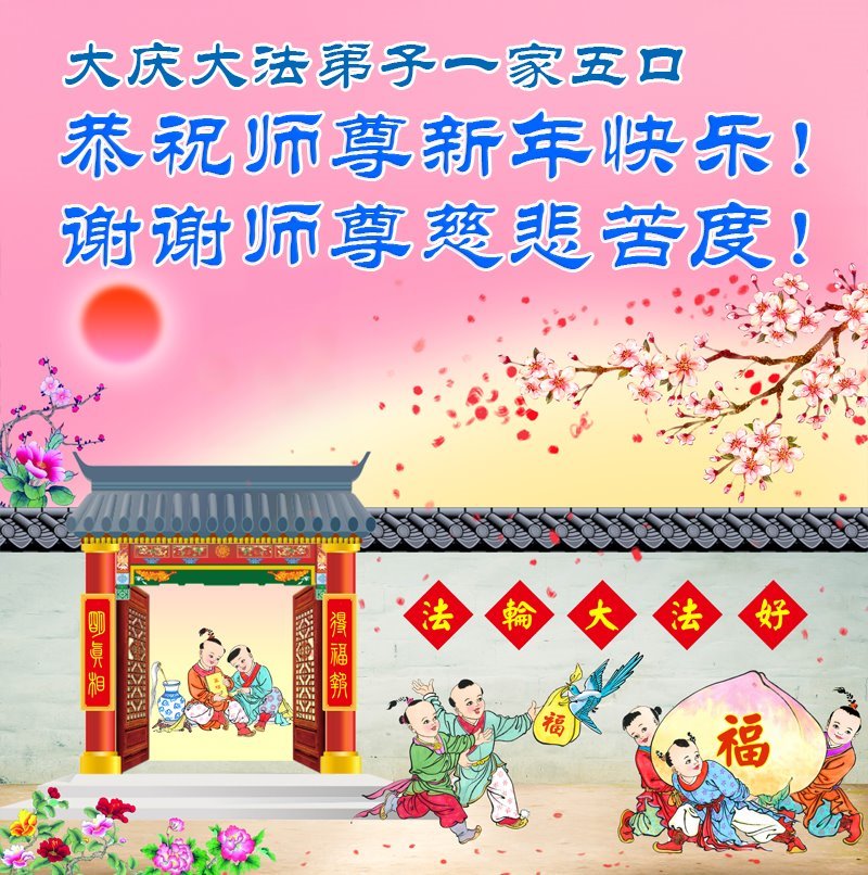 我們全家都沐浴在大法的洪恩中!感謝大法!感恩師父救度之恩!弟子與家人懷著敬仰感恩之心敬祝師尊新年快樂!叩拜師尊!