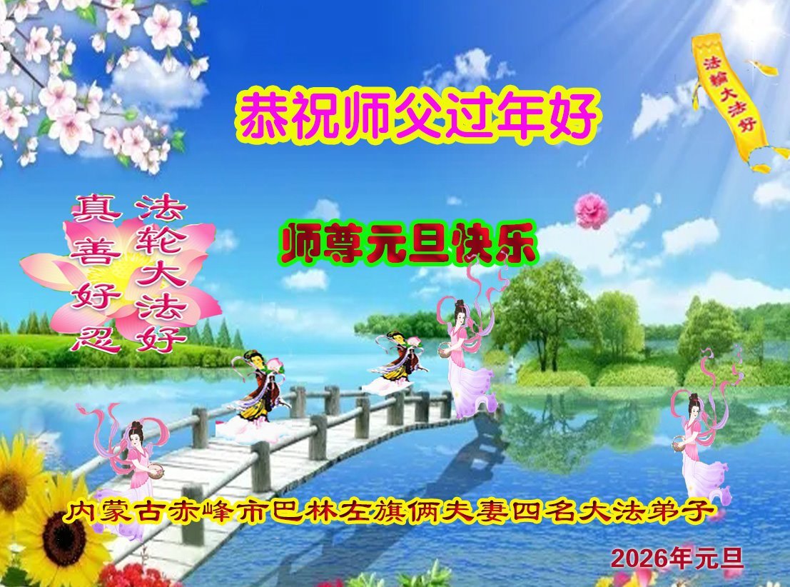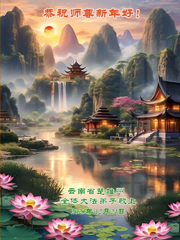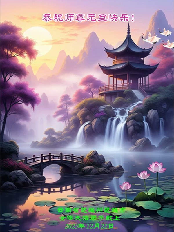 值此新年之際,向師尊獻上最真摯的祝願,遙祝師尊新年快樂!並向師尊獻上一份滿意的答卷,走好最後無悔的修煉路,回歸淨土。