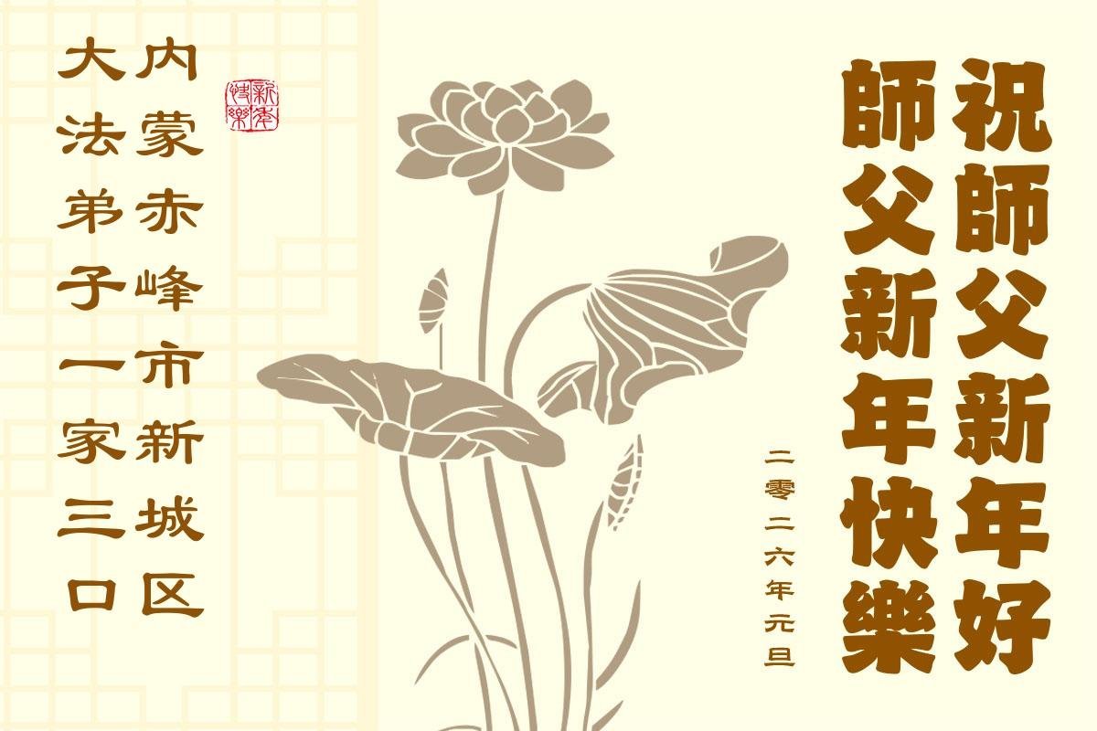 內蒙赤峰市新城區大法弟子一家三口敬上