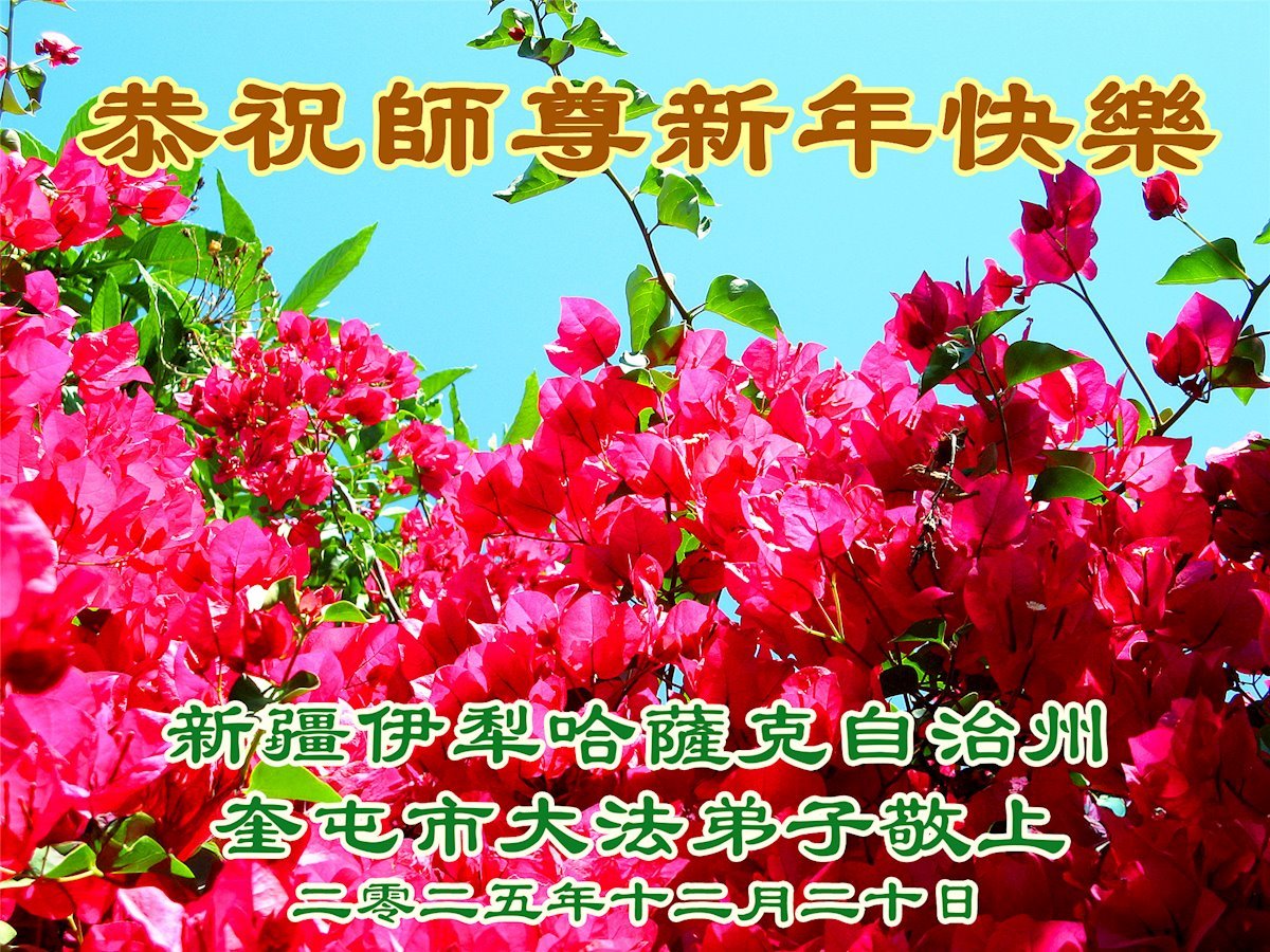 新疆伊犁哈薩克自治州奎屯市大法弟子恭祝師尊新年快樂!