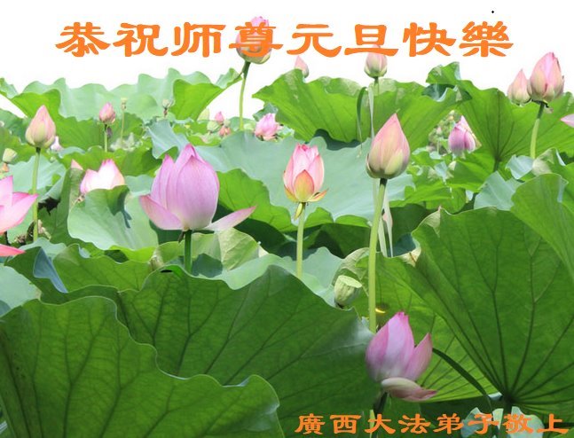 廣西壯族自治區大法弟子闔家恭祝偉大慈悲的師尊元旦快樂!