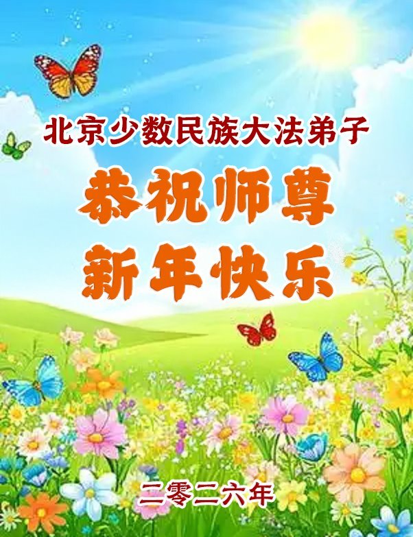 中國朝鮮族、藏族、回族、滿族、蒙古族、哈尼族、鄂倫春族、哈薩克族、彝族、壯族等民族的大法弟子們恭祝慈悲偉大的師父二零二六年新年快樂!