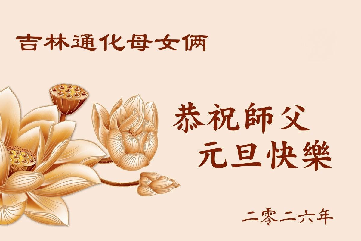 吉林通化母女倆大法弟子恭祝慈悲偉大的師尊元旦快樂!