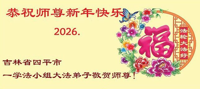 吉林省四平市公主嶺市一老年男大法弟子恭祝師父新年快樂!