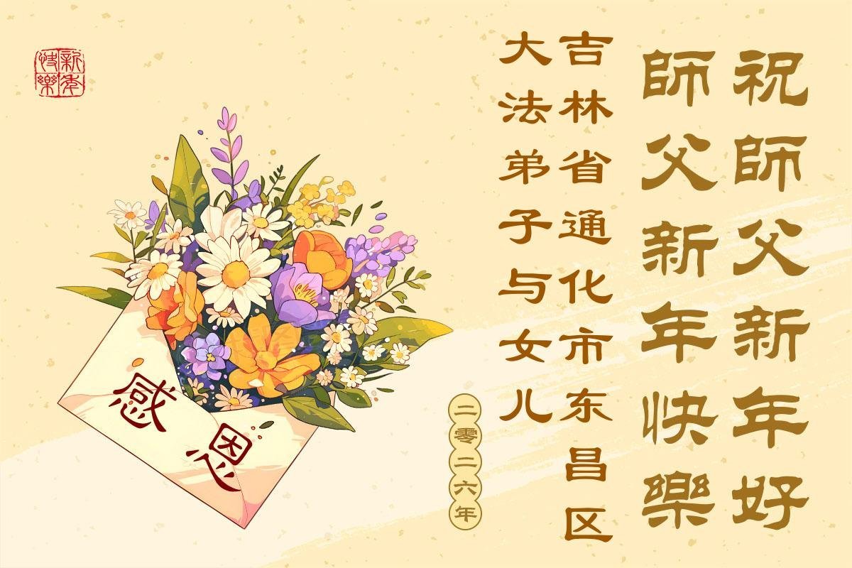吉林省通化市東昌區一學法小組大法弟子恭祝師尊新年快樂!