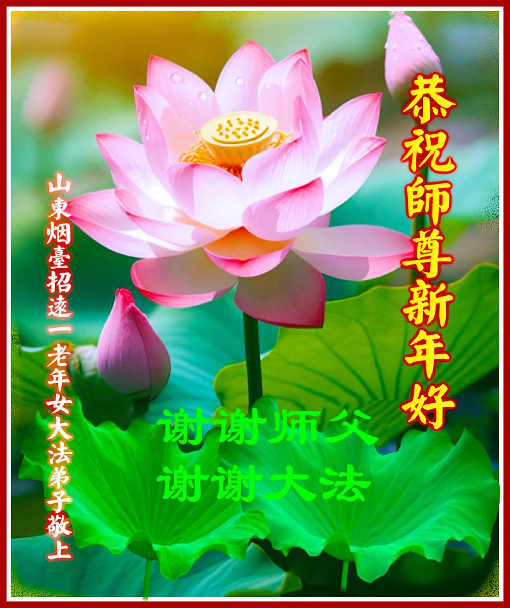恭祝師父新年快樂!謝謝師父的慈悲救度。師父為了弟子們的提高和無量眾生的得救,用巨大的承受、為普天下眾生又迎來了新的一年,在這最後的時刻,弟子要特別珍惜時間,我們要多學法,做好三件事,圓滿隨師還。
