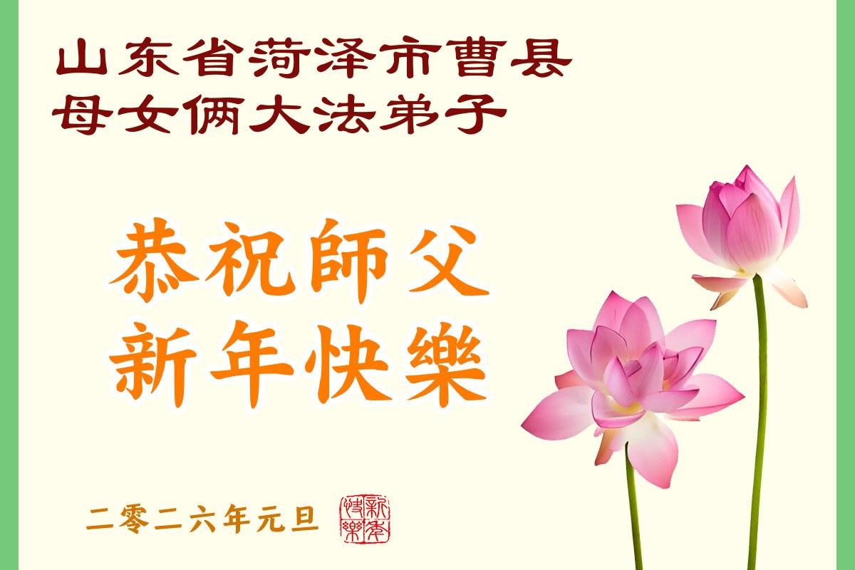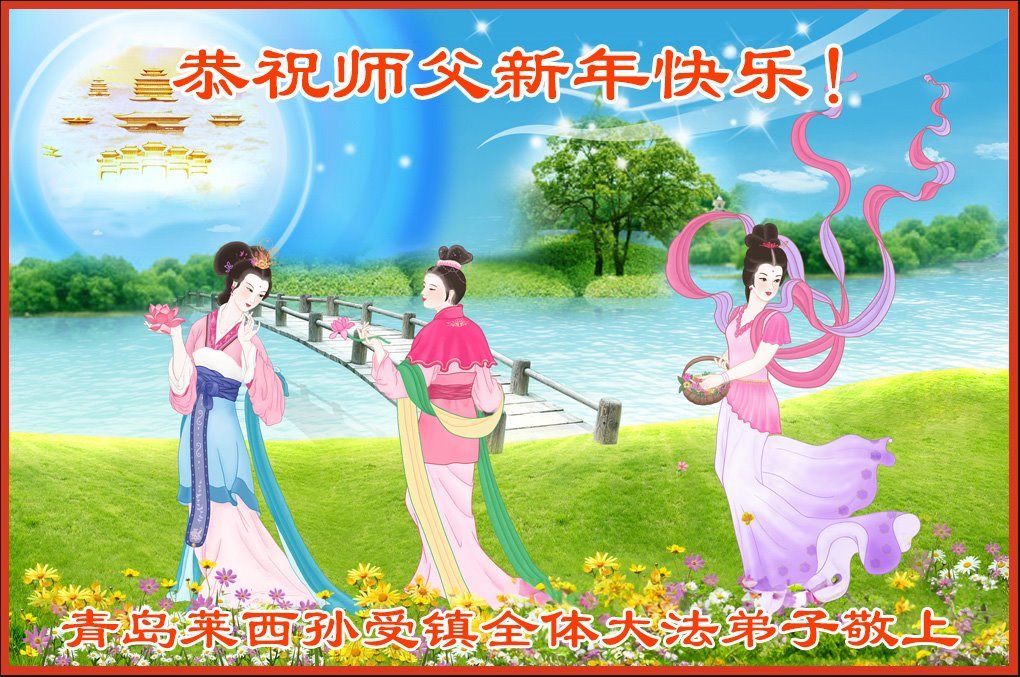 山東市青島萊西一大法弟子攜全家恭祝師尊新年好!