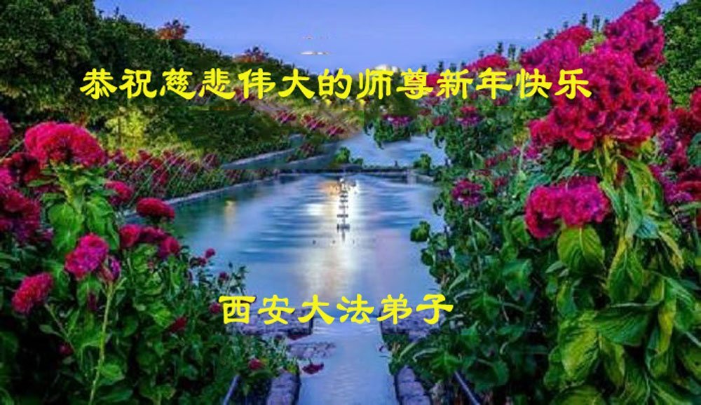 陝西省西安大法弟子恭祝慈悲偉大的師尊新年快樂!