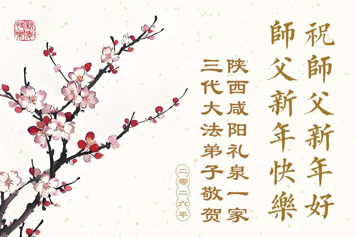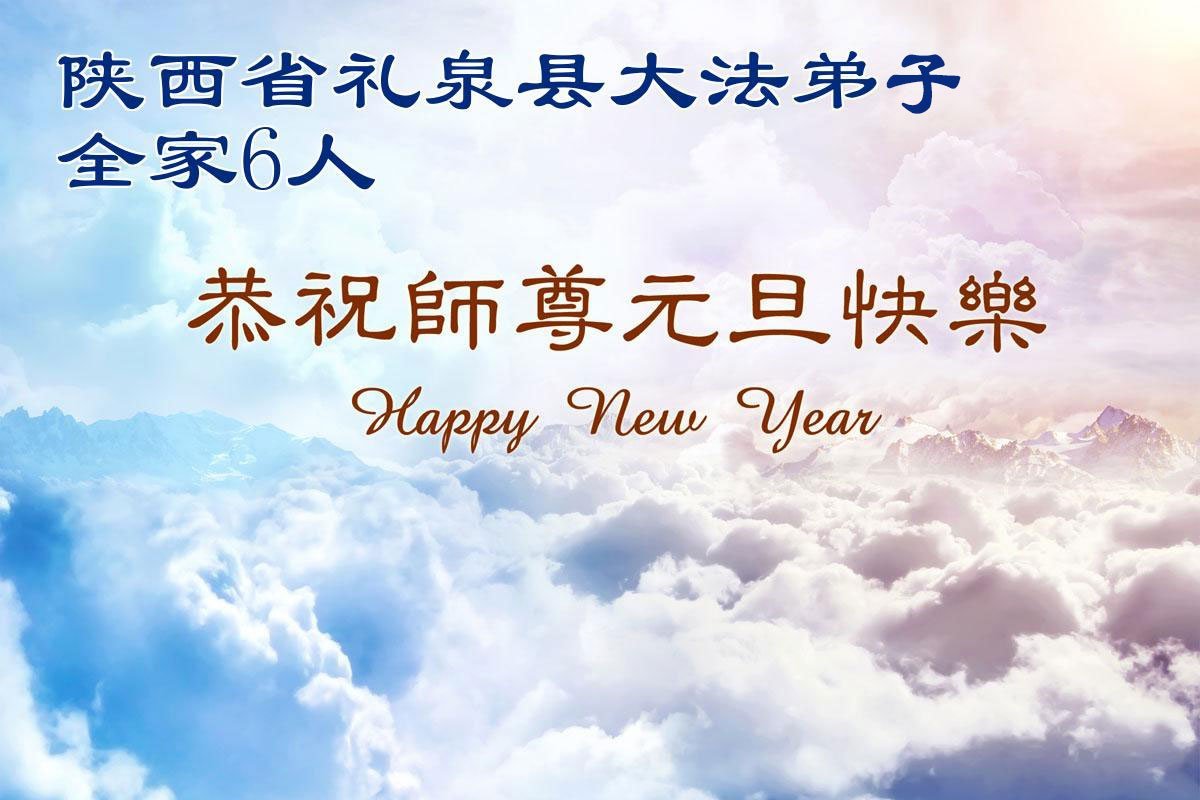 陝西省咸陽市禮泉縣一大法弟子全家6人敬祝師尊元旦快樂!