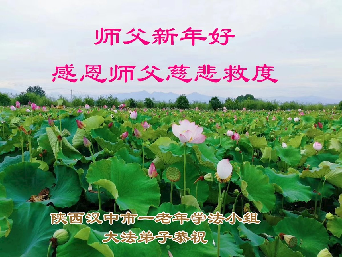 陝西省漢中市一老年學法小組大法弟子恭祝慈悲偉大的師父新年好!