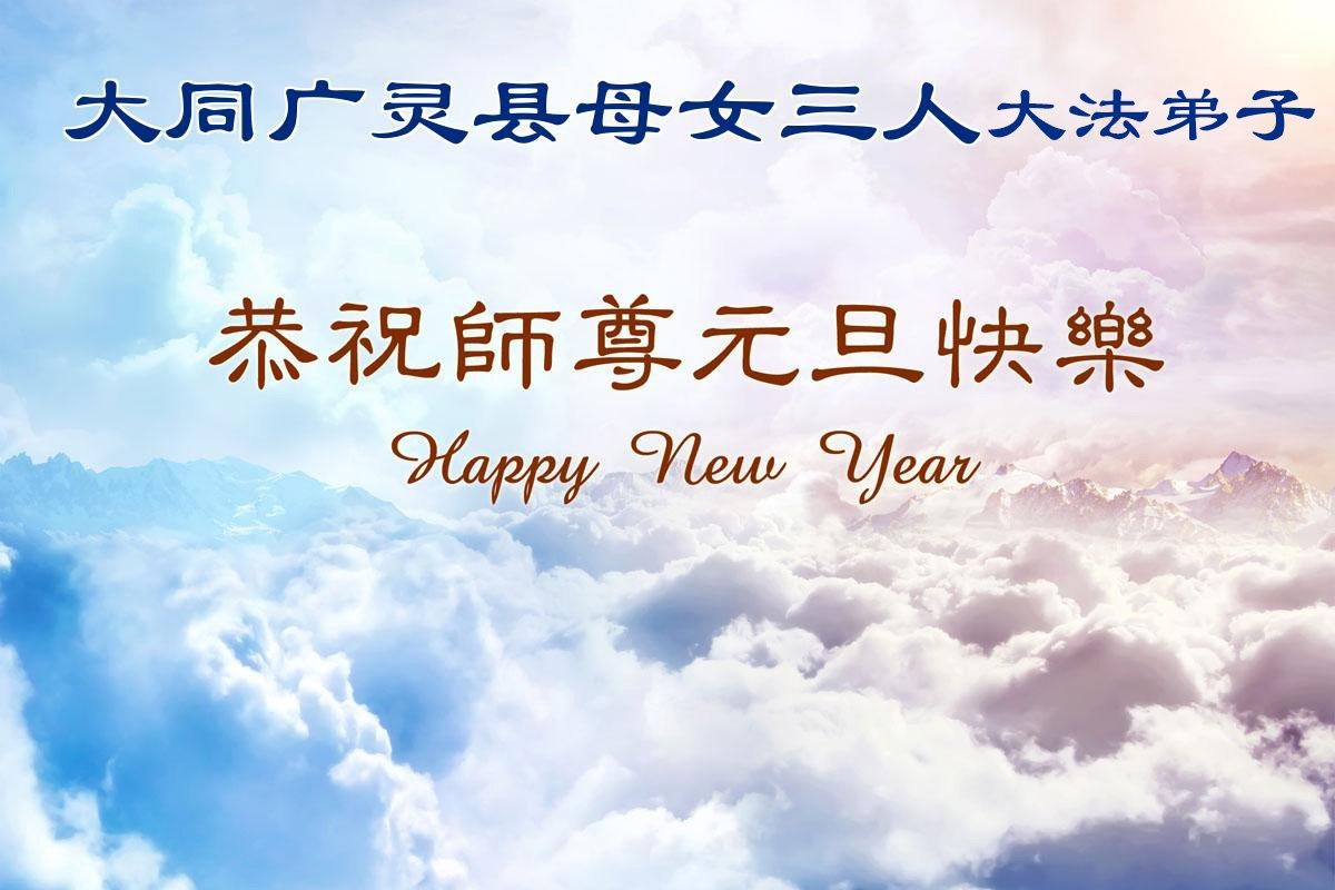 山西省大同市廣靈縣一大法弟子母女三人恭祝慈悲偉大的師尊元旦快樂!