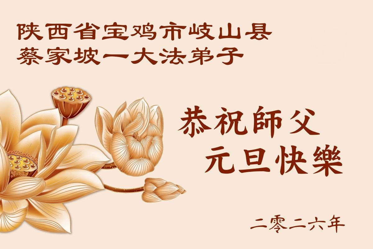陝西省寶雞市岐山縣蔡家坡一大法弟子恭祝慈悲的師尊元旦快樂!
