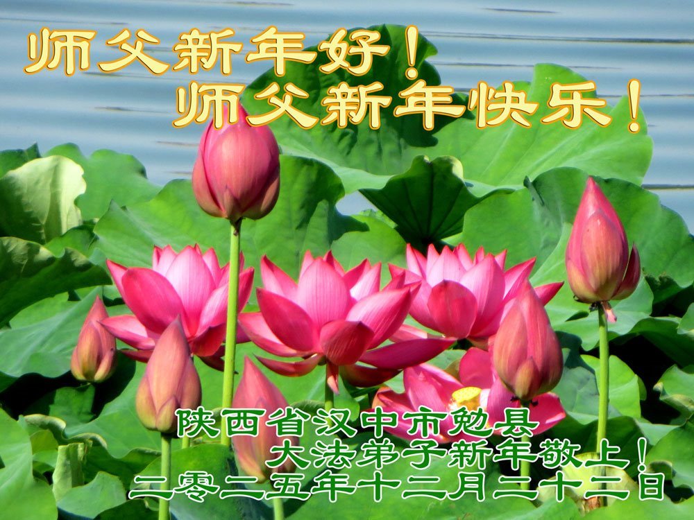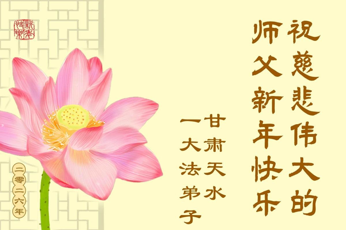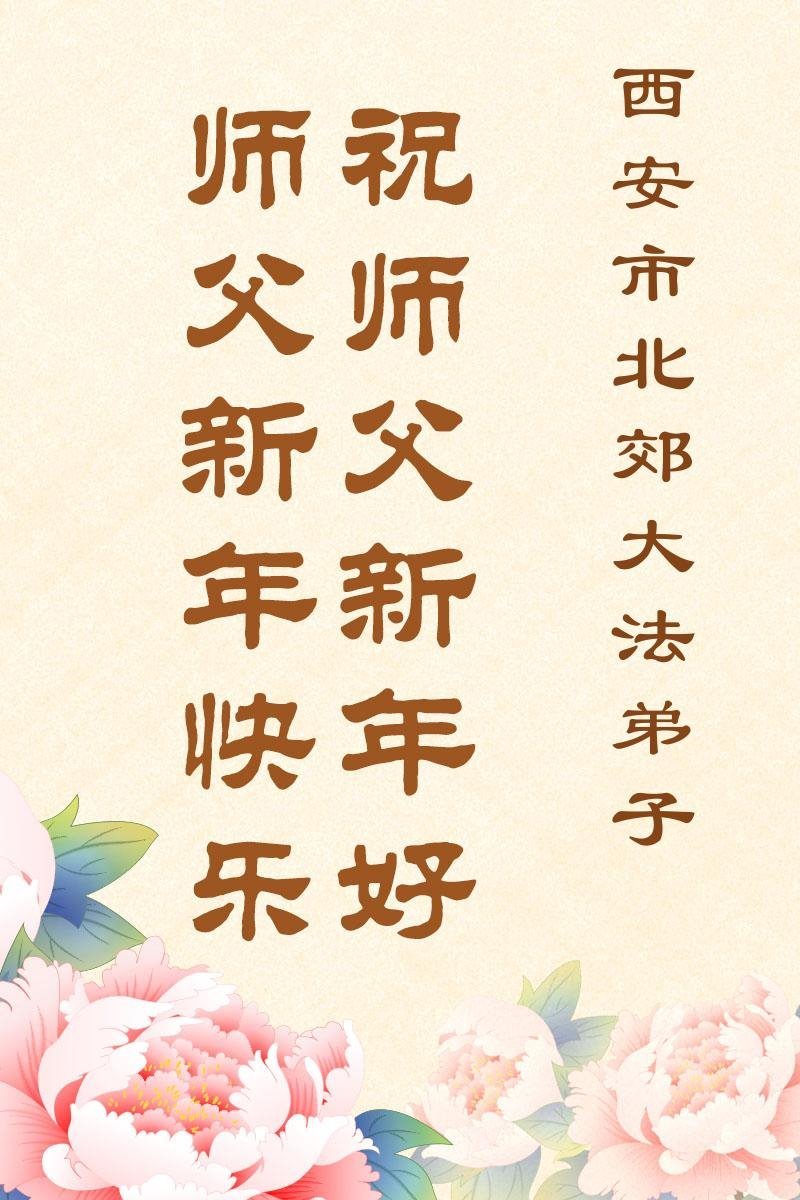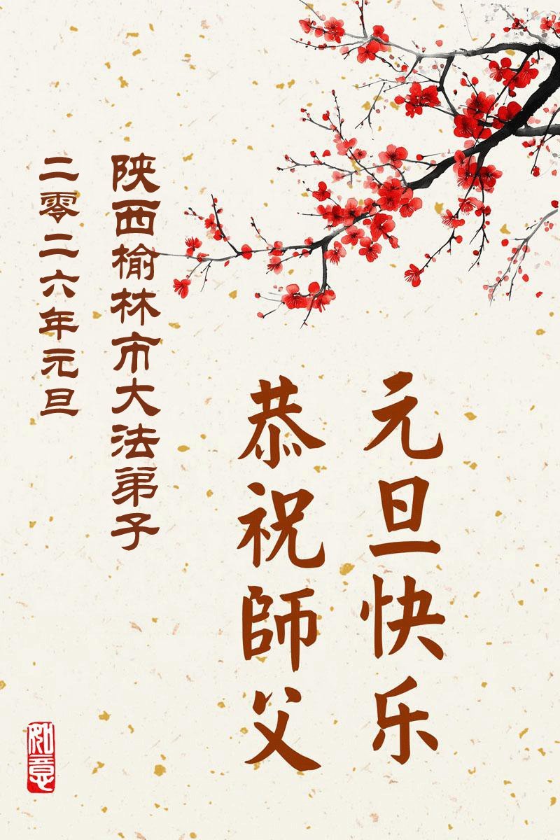 陝西省榆林一大法弟子恭祝慈悲偉大的師尊新年快樂!值此新年之際,弟子感恩師尊的慈悲苦度!弟子一定做好三件事,成為合格的大法弟子,少讓師尊操心,隨師回家園!