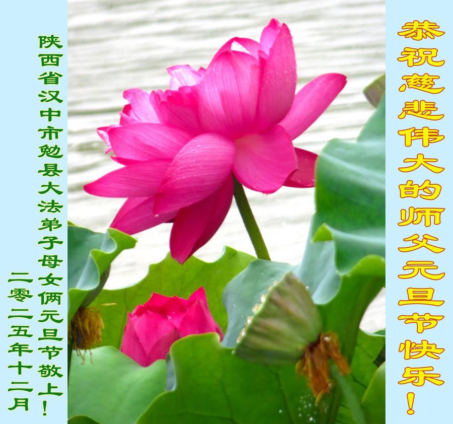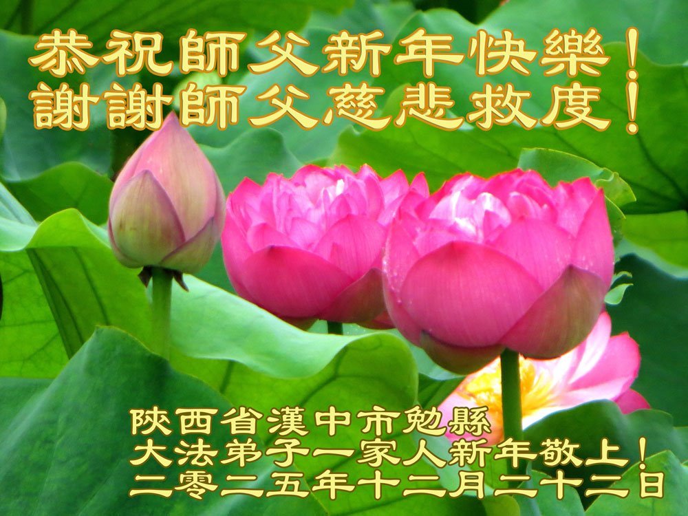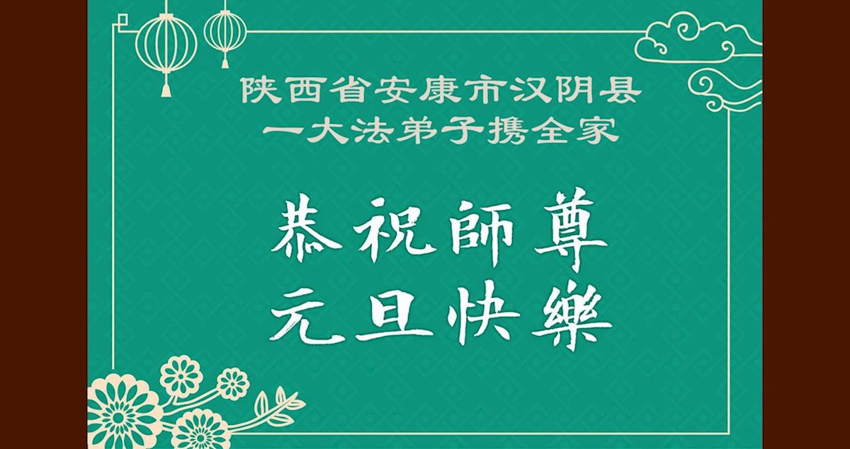 陝西省安康市漢陰縣一大法弟子攜全家恭祝師尊元旦快樂!