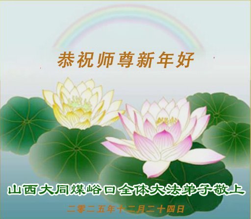 感謝師尊又為弟子操勞了一年。在這正法修煉走到最後的關頭,助師救人是我們正法弟子的使命。我們太原大法弟子一定要集中力量,發正念結束這場迫害。走好修煉路,不負恩師重望。