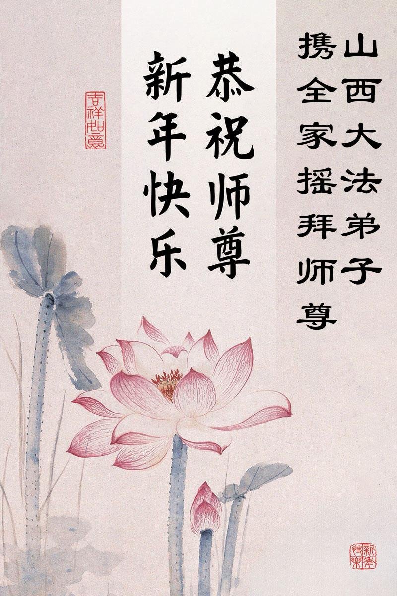 恭祝慈悲偉大的師父新年快樂!弟子一定認真學法,做好三件事,精進實修,做個合格的大法弟子,以報師恩。